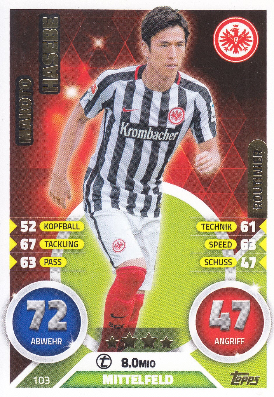 Makoto Hasebe - Eintracht Frankfurt - Topps Match Attax 2016 - Routinier - Nr. 103
