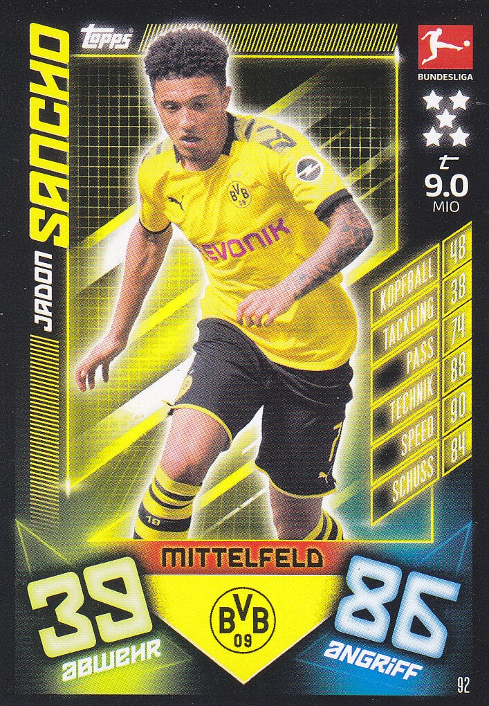 Jadon Sancho / Borussia Dortmund / Topps Match Attax 2019 / Basis Karte / Nr,.92