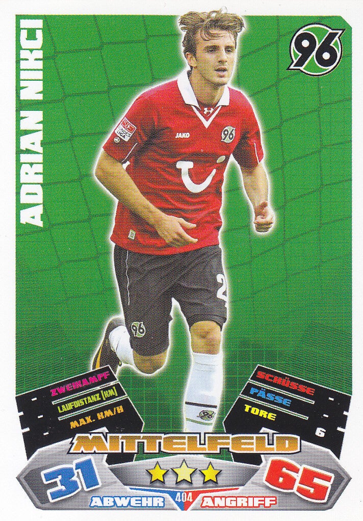 Adrian Nikci / Hannover 96 / Topps Match Attax 2012 / Basis Karte / Nr. 404