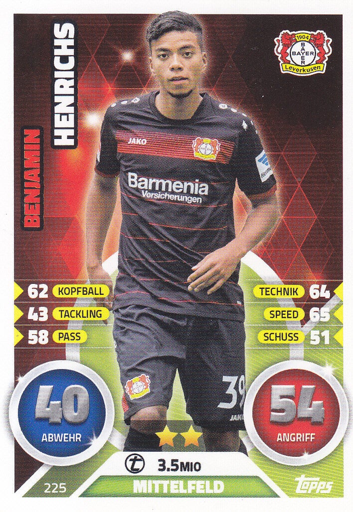 Benjamin Henrichs / Bayer Leverkusen / Topps Match Attax 2016 / Basis Karte / Nr. 225