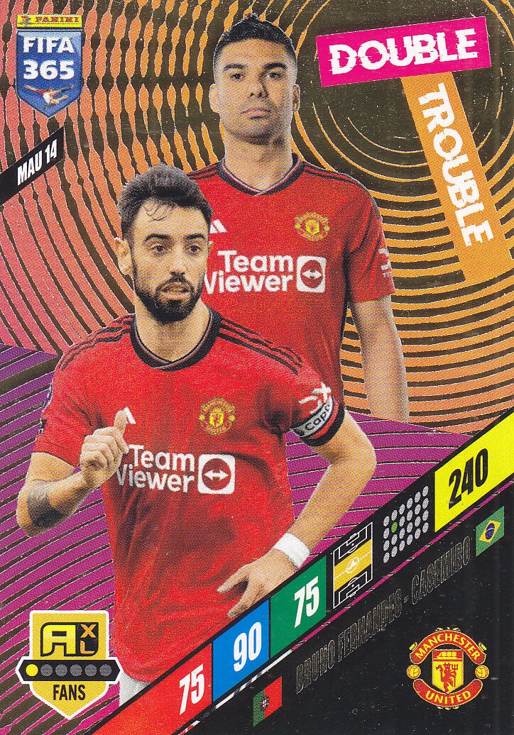 Bruno Fernandes & Casemiro / Manchester United / Panini Fifa 365 Jahr 2024 / Double Trouble / Icon Fans / Nr. MAU 14