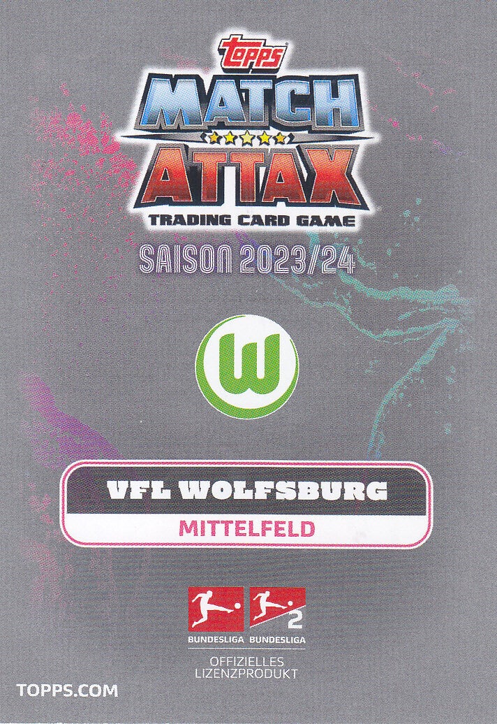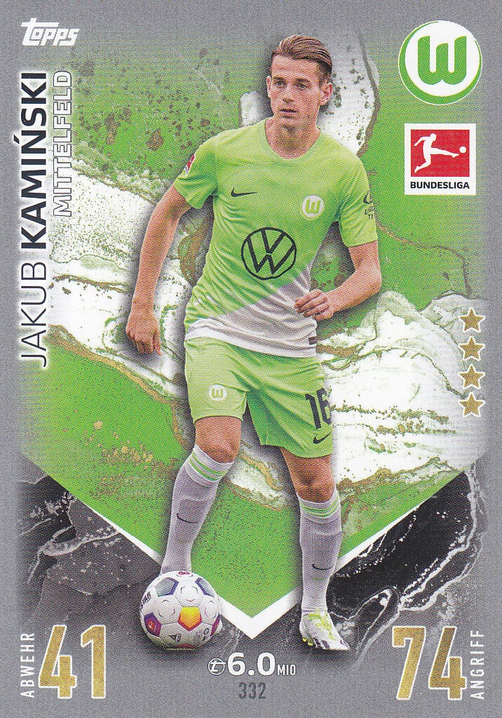 Jakub Kaminski / VFL Wolfsburg / Topps Match Attax 2023 / Basis Karte / Nr.332