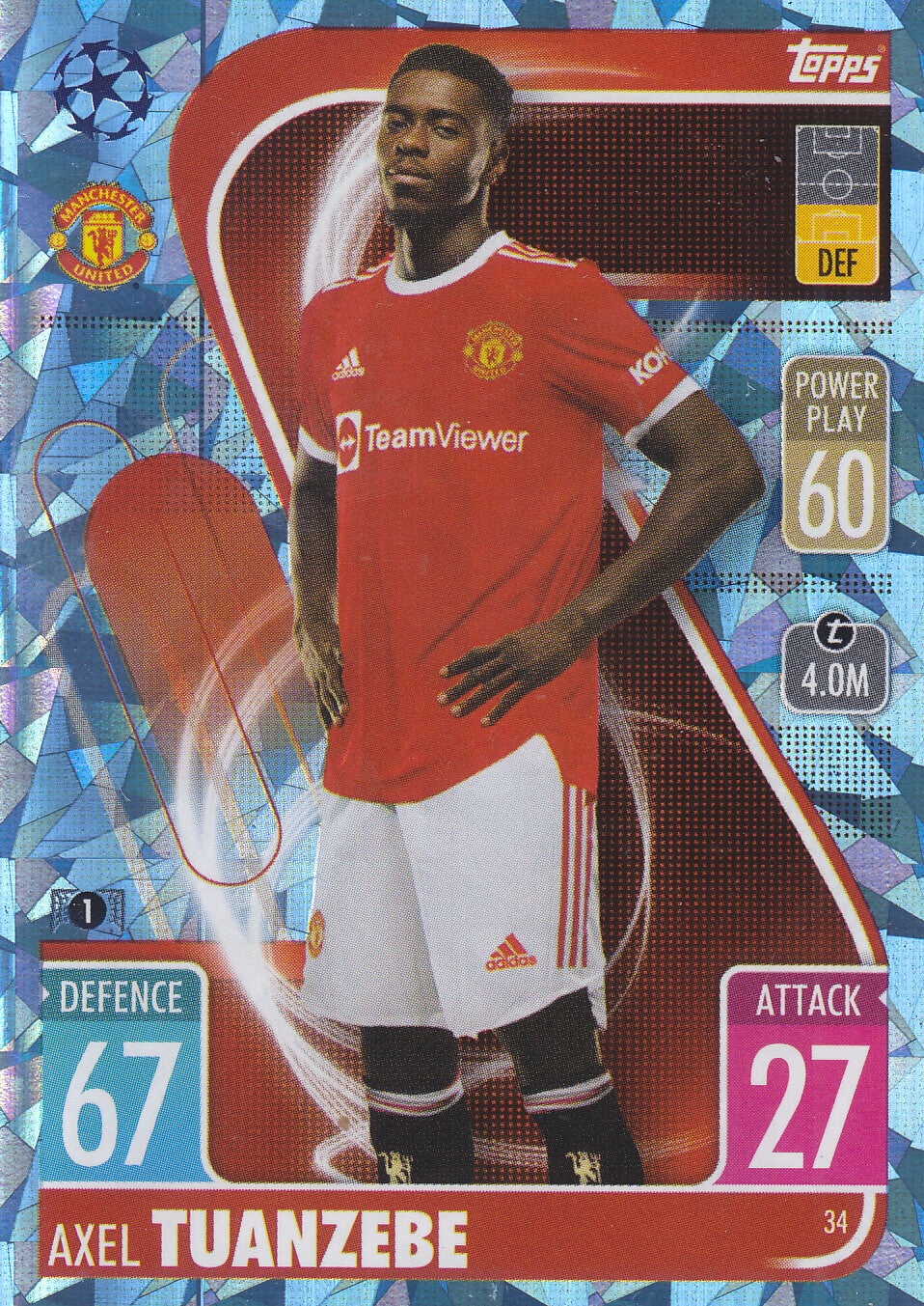 Axel Tuanzebe / Manchester United - Topps Champions League 2021 / Parallel Crystal Karte / Nr.34