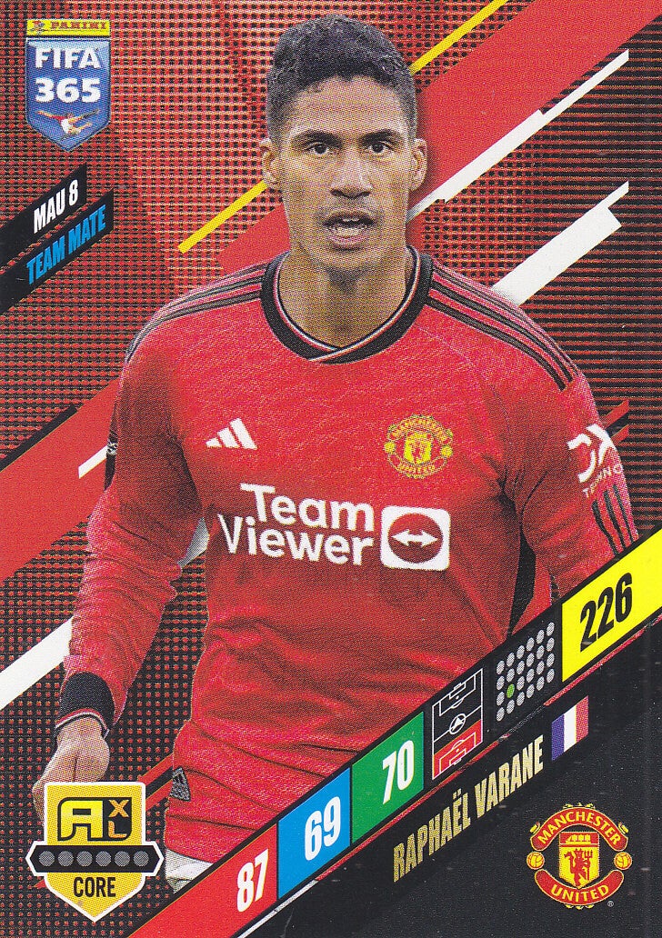 Raphael Varane / Manchester United / Panini Fifa 365 Jahr 2024 / Team Mate Karte / Icon Core / Nr. MAU 8