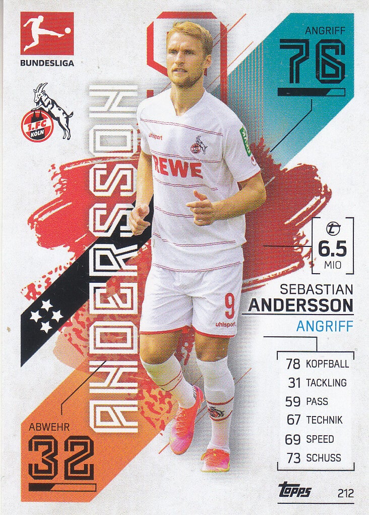 Sebastian Andersson / 1.FC Köln / Topps Match Attax 2021 / Basis Karte / Nr.212