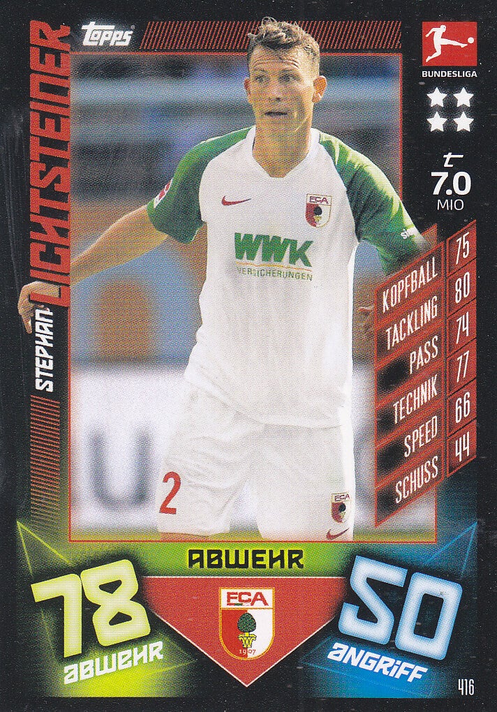 Stephan Lichtsteiner / FC Augsburg / Topps Match Attax 2019 / Basis Karte / Nr. 416