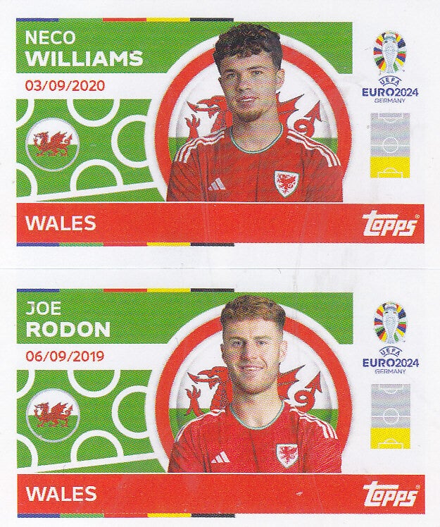 Neco Williams & Joe Rodon / Wales / Topps EM 2024 / Doppelbild / Nr. WAL 4 WAL 5