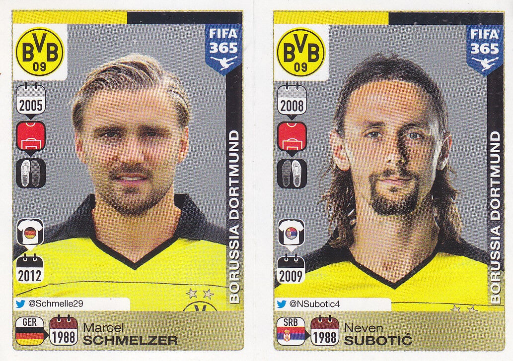 Marcel Schmelzer & Neven Subotic / Panini Fifa 365 Jahr 2015 / Basis Bild / Nr.498 Nr.499