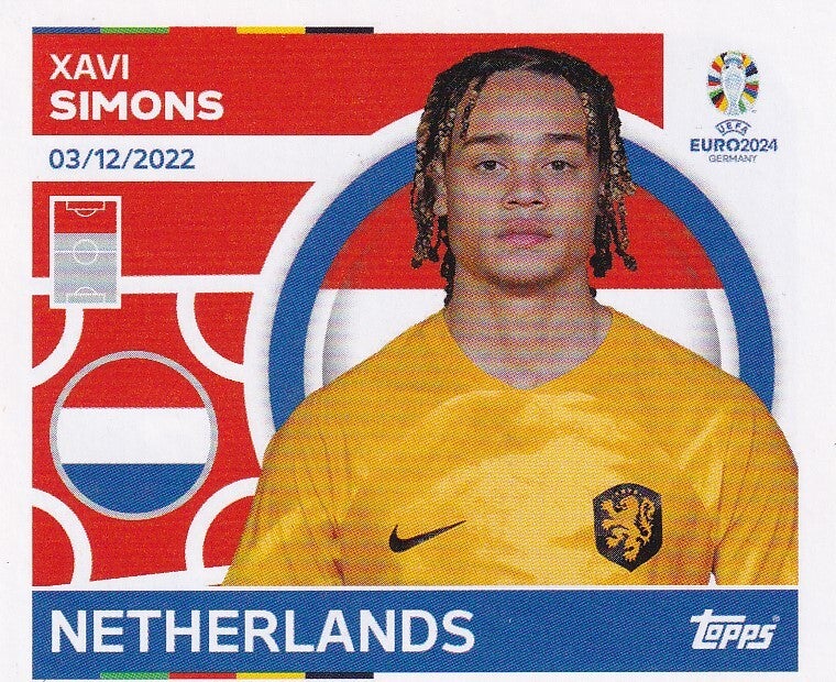 Xavi Simons / Holland / Topps EM 2024 / Basis Bild / Nr. NED 17