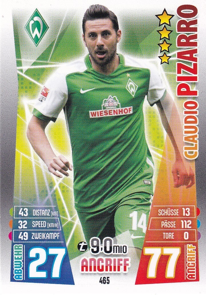 Claudio Pizarro - SV Werder Bremen - Topps Match Attax 2015 - Basis Karte - Nr. 465