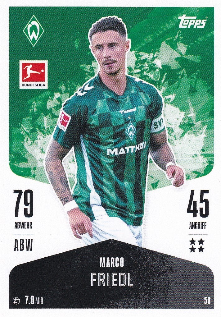 Marco Friedl / SV Werder Bremen / Topps Match Attax 2024 / Basis Karte / Nr. 58