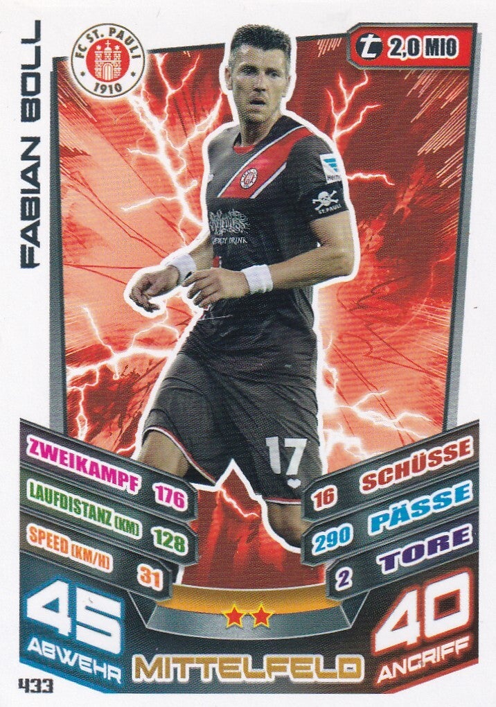 Fabian Boll / FC St. Pauli / Topps Match Attax 2013 / Basis Karte / Nr. 433