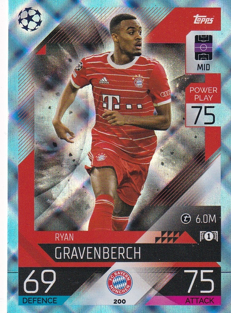 Ryan Gravenberch / FC Bayern München / Topps Champions League 2022 / Chrystal Blue / Nr. 200