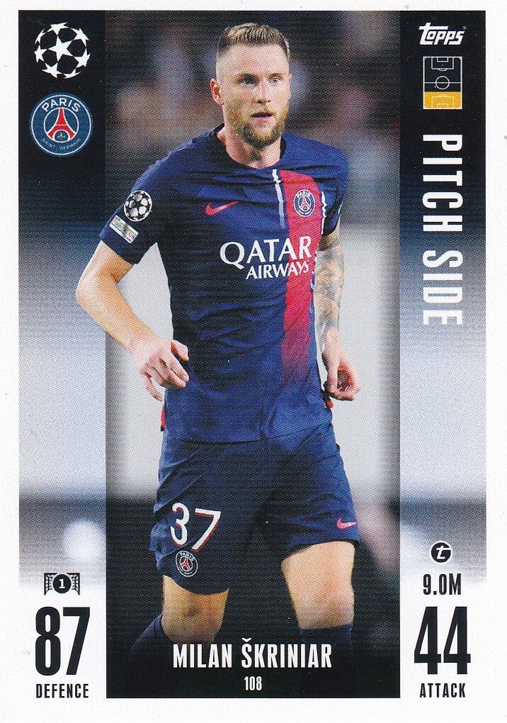 Milan Skriniar / Paris St. Germain / Topps Champions League 2023 Extra / Pitch Side / Nr. 108