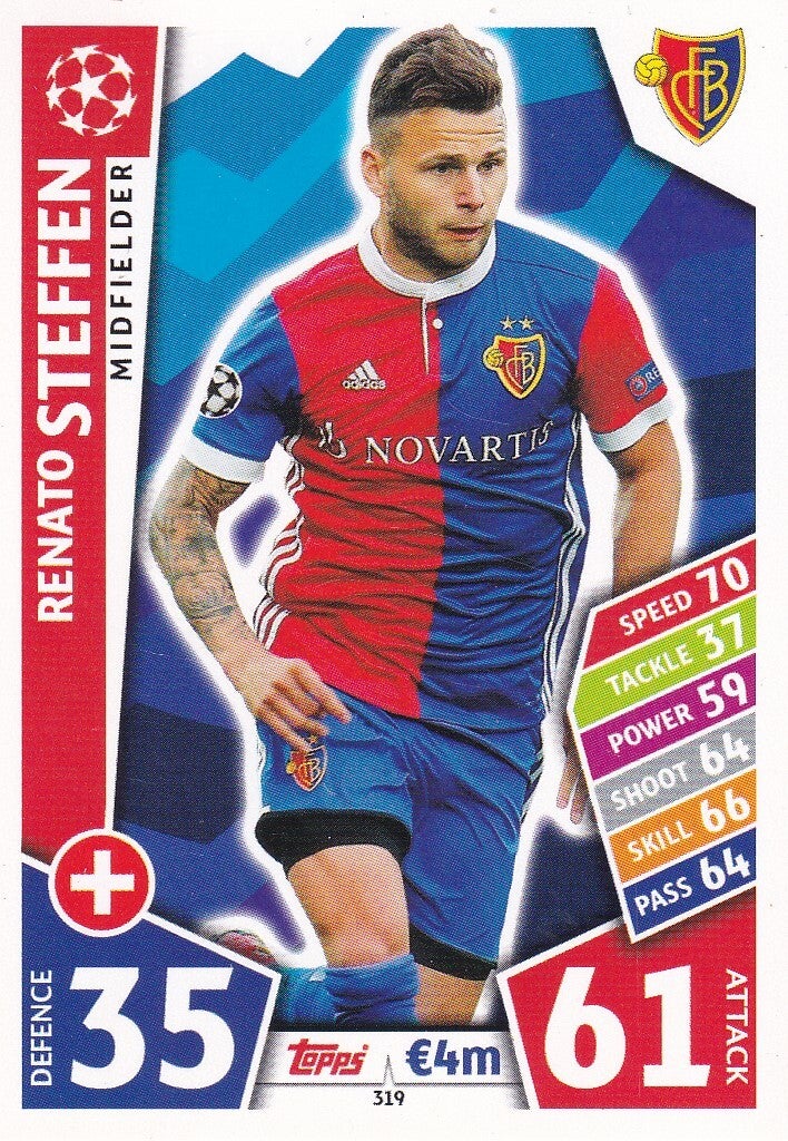 Renato Steffen / FC Basel / Topps Champions League 2017 / Basis Karte / Nr. 319