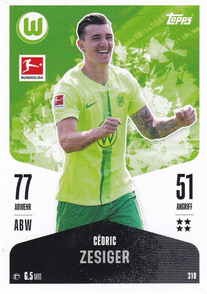 Cedric Zesiger / VFL Wolfsburg / Topps Match Attax 2024 / Basis Karte / Nr. 310