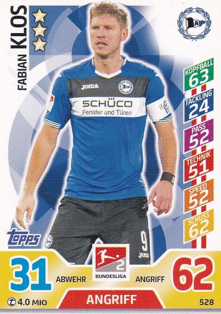 Fabian Klos / Arminia Bielefeld / Topps Match Attax 2017 / Basis Karte / Nr. 528