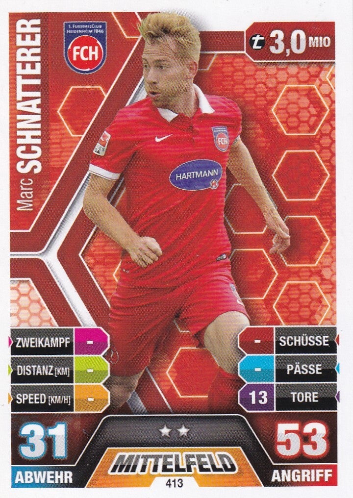 Marc Schnatterer - FC Heidenheim - Topps Match Attax 2014 - Basis Karte - Nr. 413