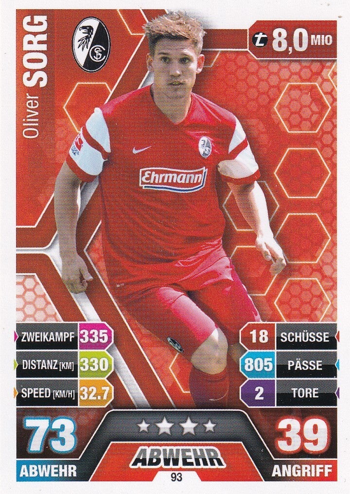 Oliver Sorg - SC Freiburg - Topps Match Attax 2014 - Basis Karte - Nr. 93