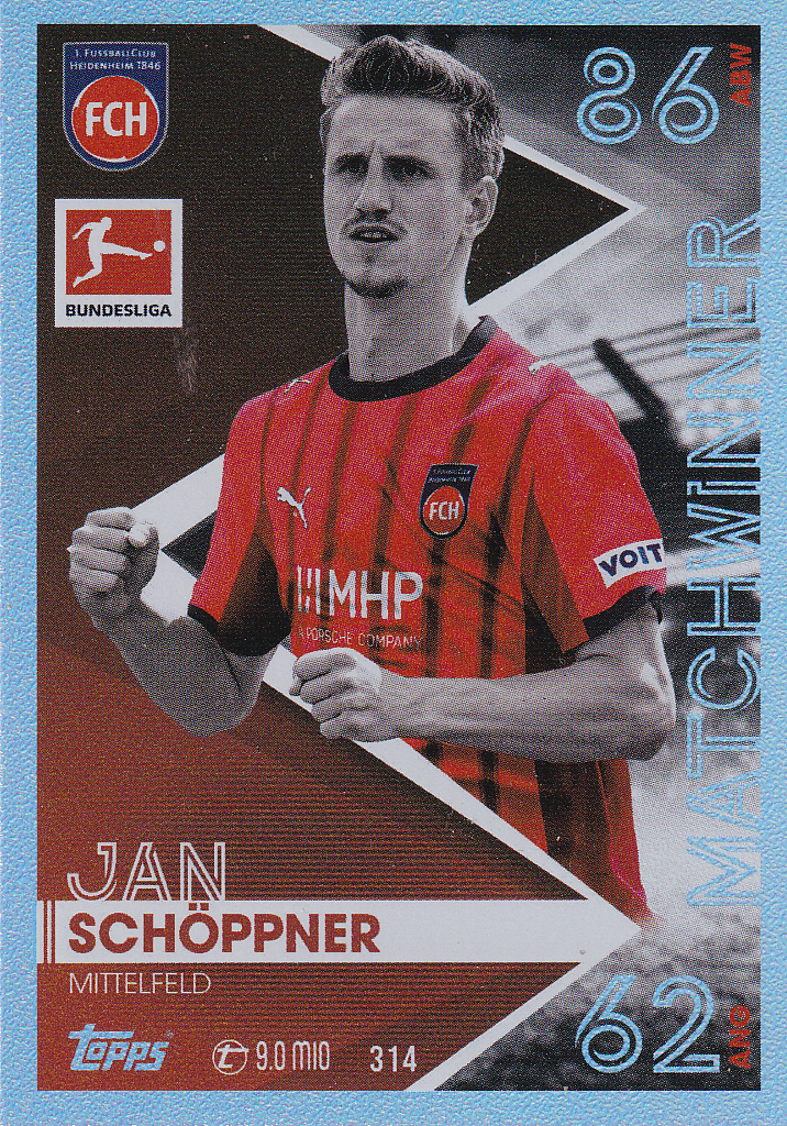 Jan Schöppner - 1.FC Heidenheim - Topps Match Attax 2025 - Matchwinner - Nr. 314