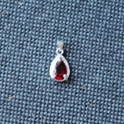 Anhänger für Kette in Tropfenform.925er Silber mit rotem Stein nie getragen.