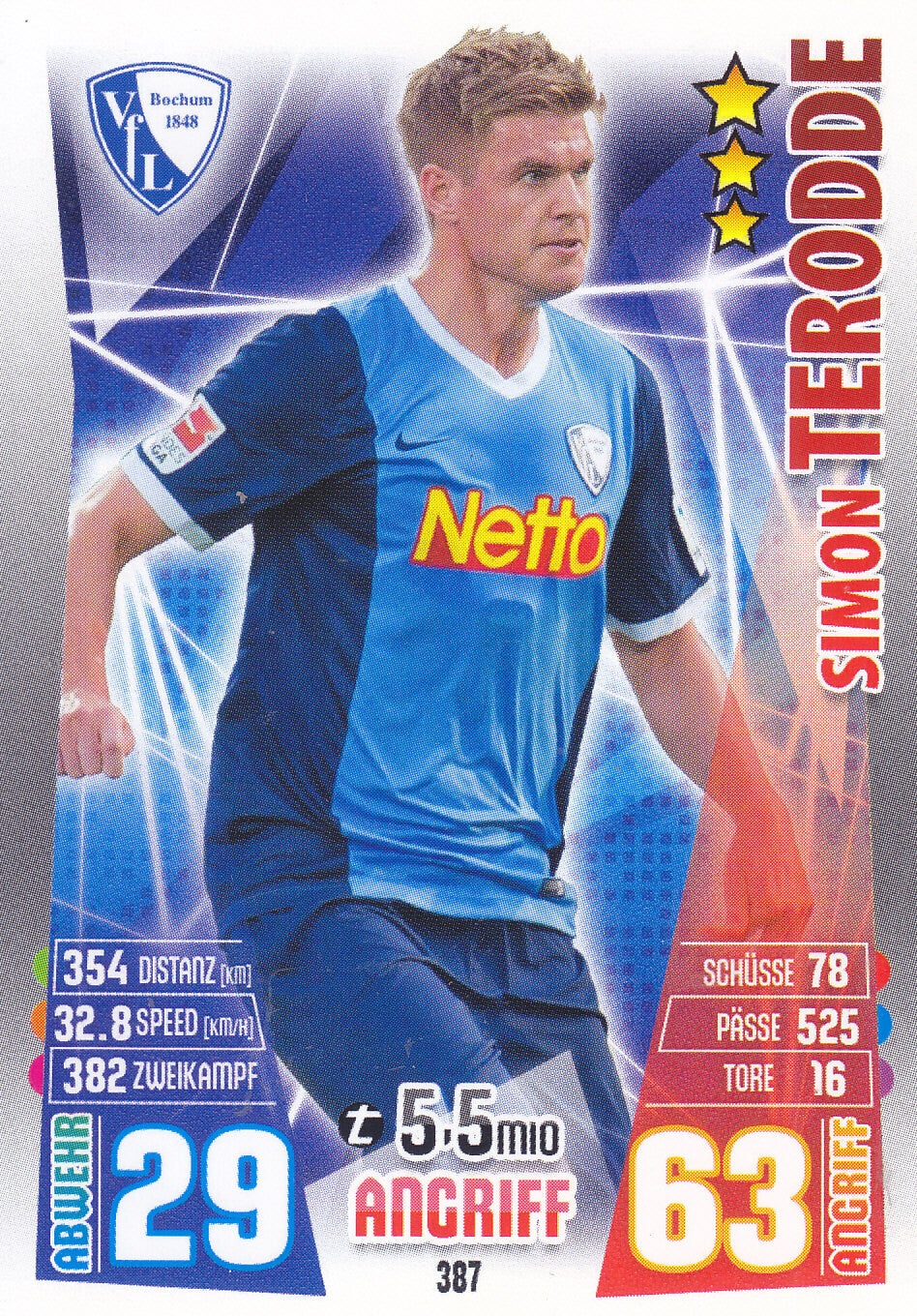 Simon Terrodde / VFL Bochum / Topps Match Attax 2015 / Basis Karte / Nr. 387