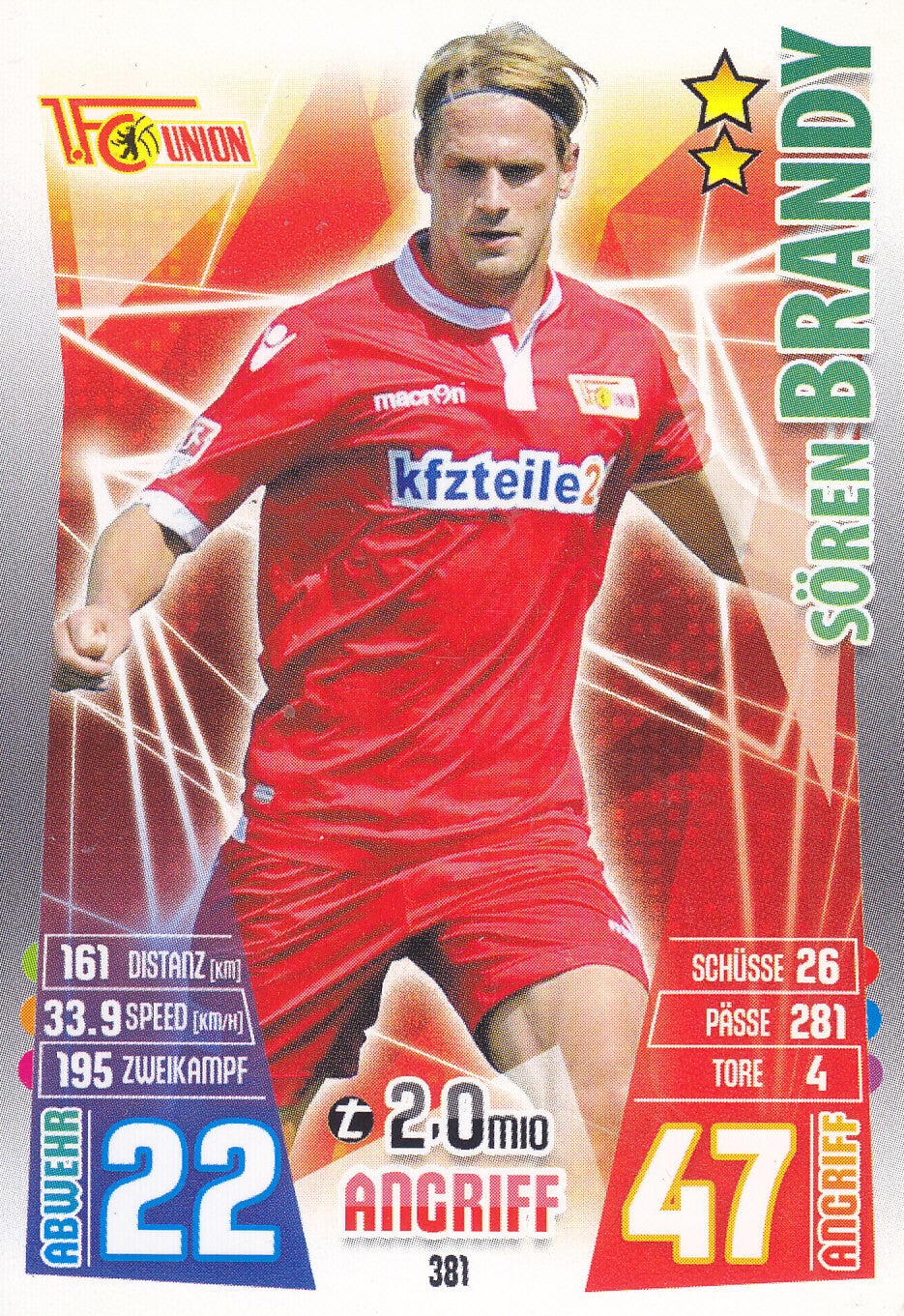 Sören Brandy / 1.FC Union Berlin / Topps Match Attax 2015 / Basis Karte / Nr.381