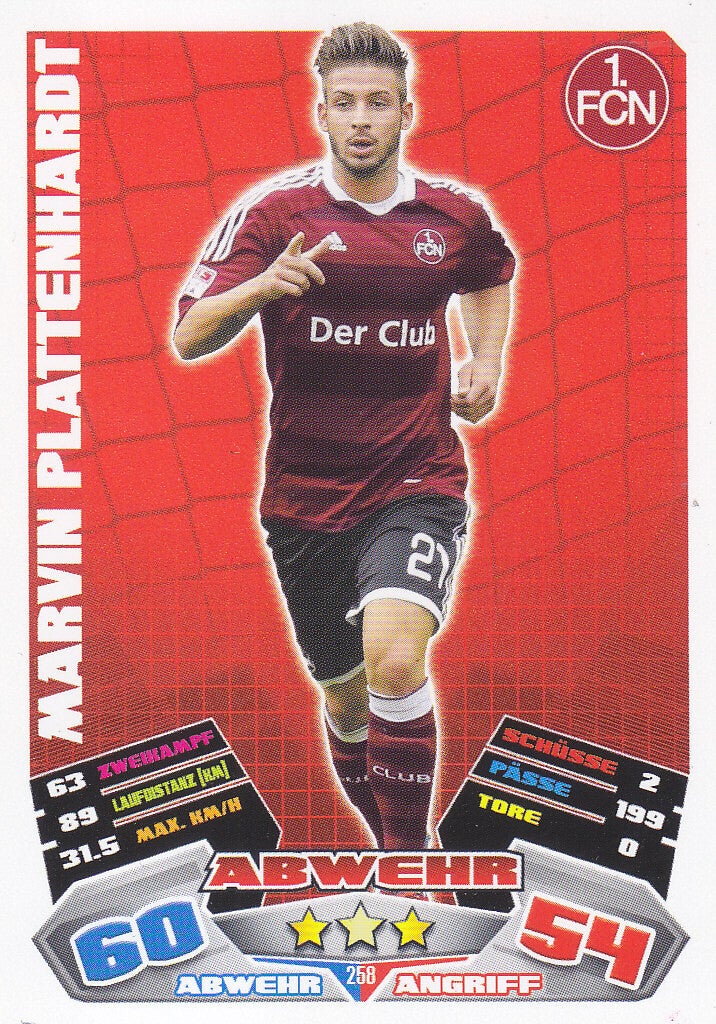 Marvin Plattenhardt / 1.FC Nürnberg / Topps Match Attax 2012 / Basis Karte / Nr.258