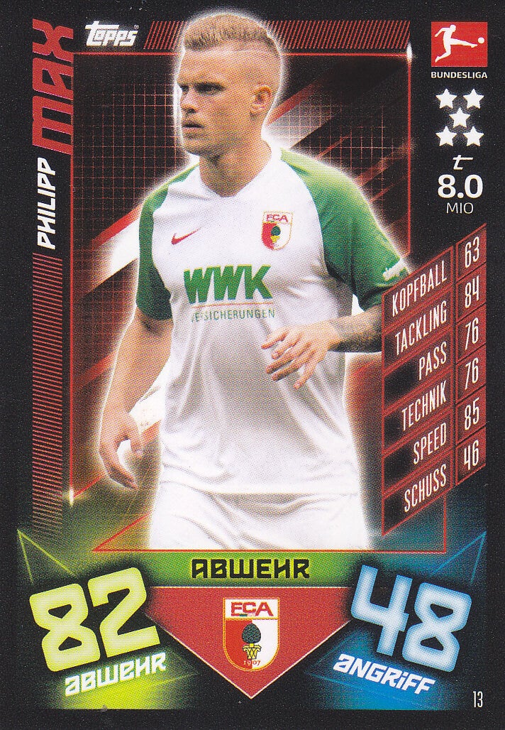 Philipp Max / FC Augsburg / Topps Match Attax 2019 / Basis Karte / Nr.13