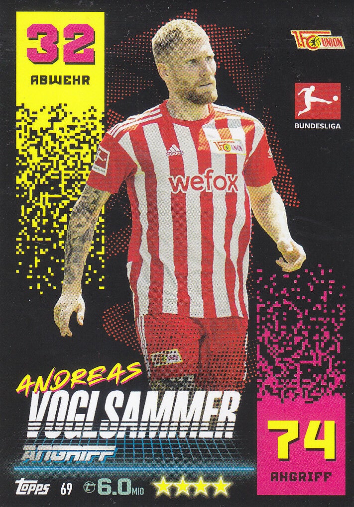 Andreas Voglsammer 1.FC Union Berlin Basis Karte Nr.69