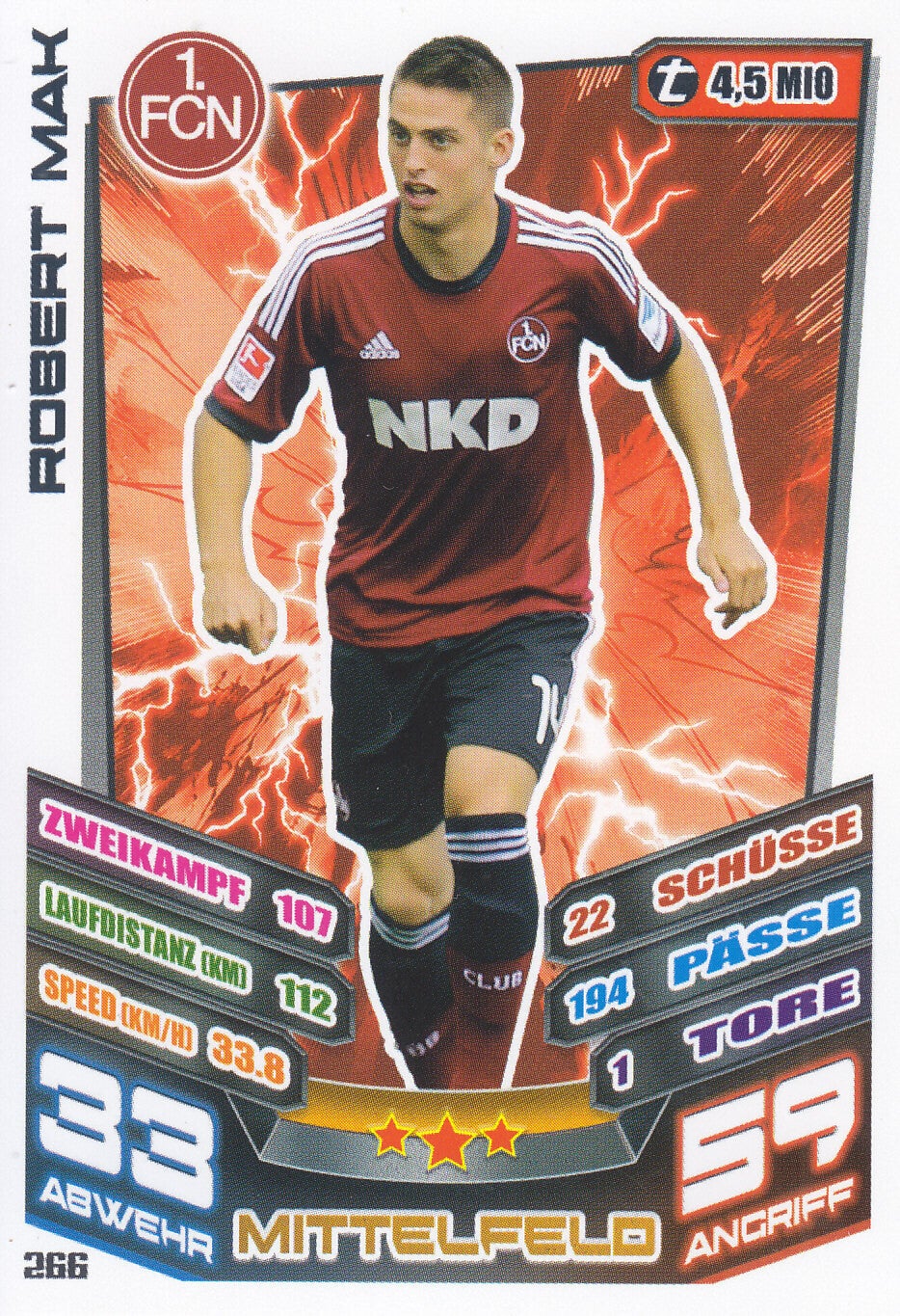 Robert Mak / 1.FC Nürnberg / Topps Match Attax 2013 / Basis Karte / Nr. 266